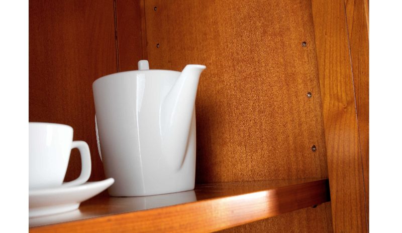 Holz: Kirschbaum, Eiche oder Nussbaum in verschiedenen Farbtönen gebeizt, handpoliert oder lackiert.
