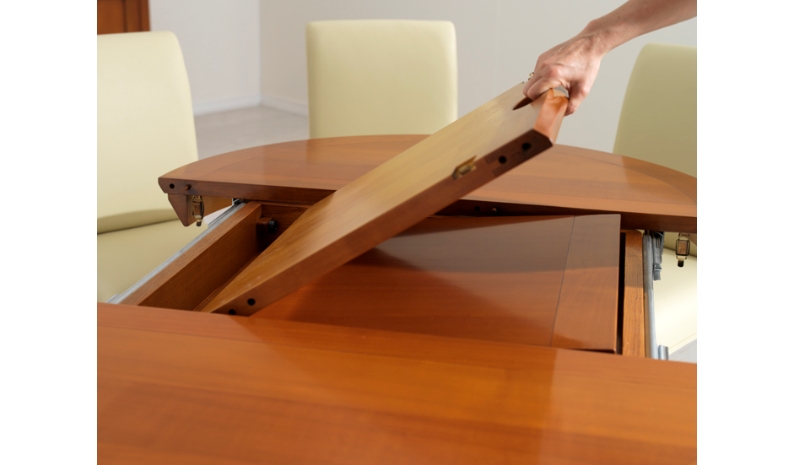 Aus rund wird oval, wenn der Mittelauszug mit einer Einlegeplatte à 60 Zentimeter (Foto) genutzt wird.