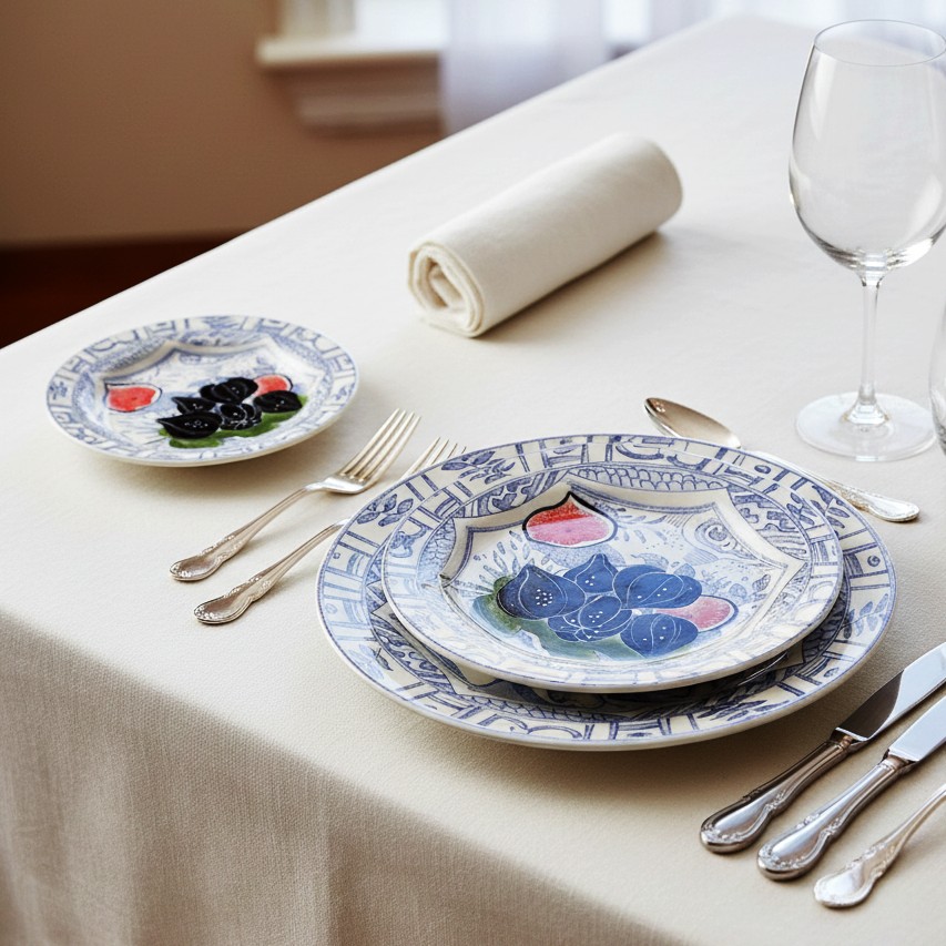 Das Keramik Geschirr der Serie Oiseau Bleu Fruits im französischen Landhausstil mit fruchtigen Druckmotiven.