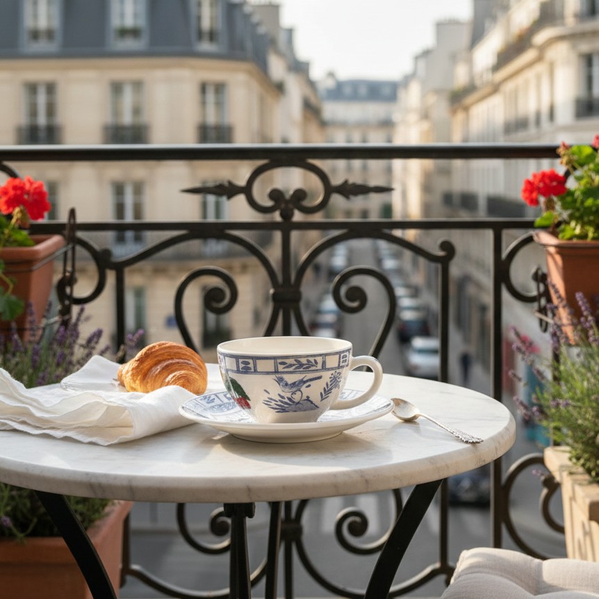Das Geschirr der Serie Oiseau bleu fruits von Gien ist mit blau-weißem Dekor verziert und zusätzlich mit bunten Früchten handbemalt. Die Serie Oiseau bleu fruits stammt aus dem 19.Jahhundert, von einer der bekanntesten Fayencerien in Frankreich, die 1821 gegründet wurde.