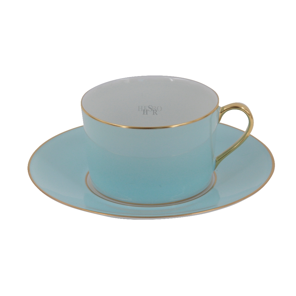 Die Porzellanserie Sous de Soleil von Legle steht für schlichte Formen, mit einem Gold- oder Platinrand veredelt.