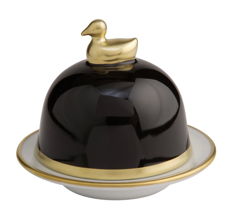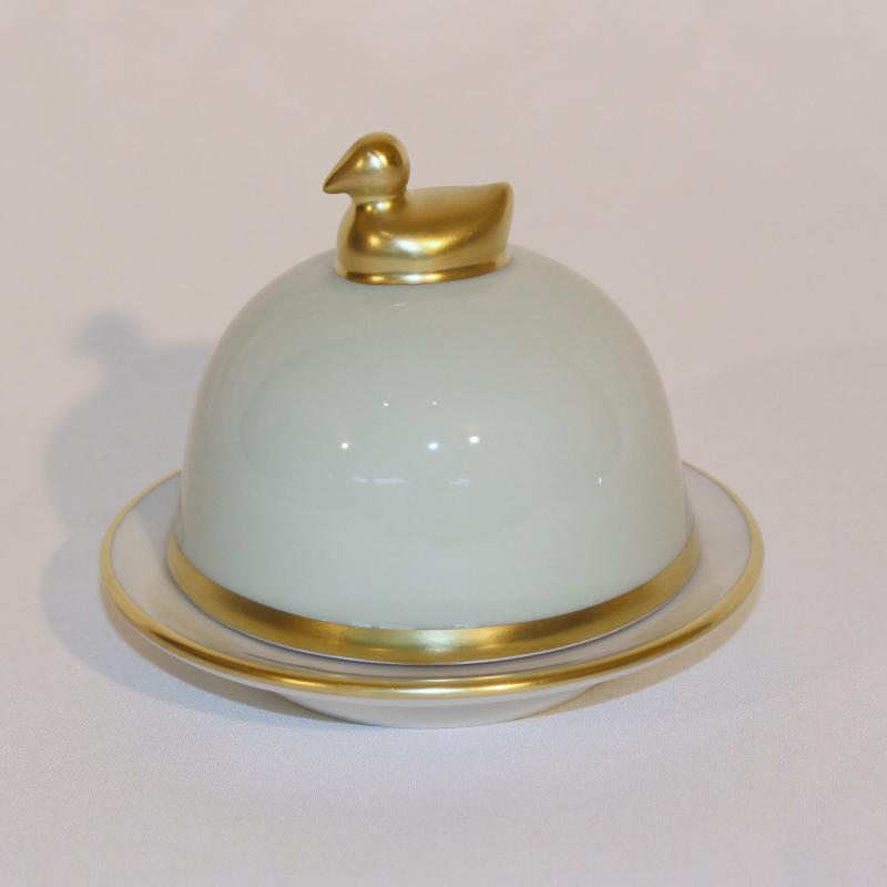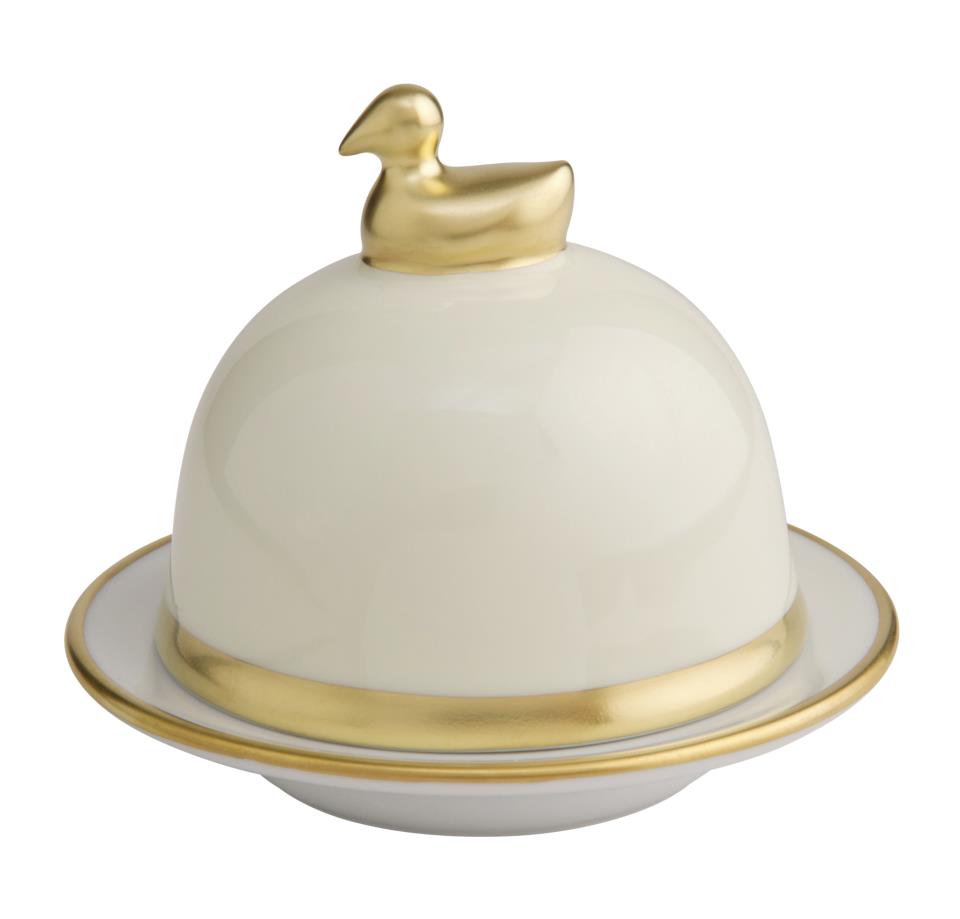 Die Butterenten der Kollektion Sous de Soleil von Legle steht für schlichte Formen, dekoriert mit einem Gold- oder Platinrand.